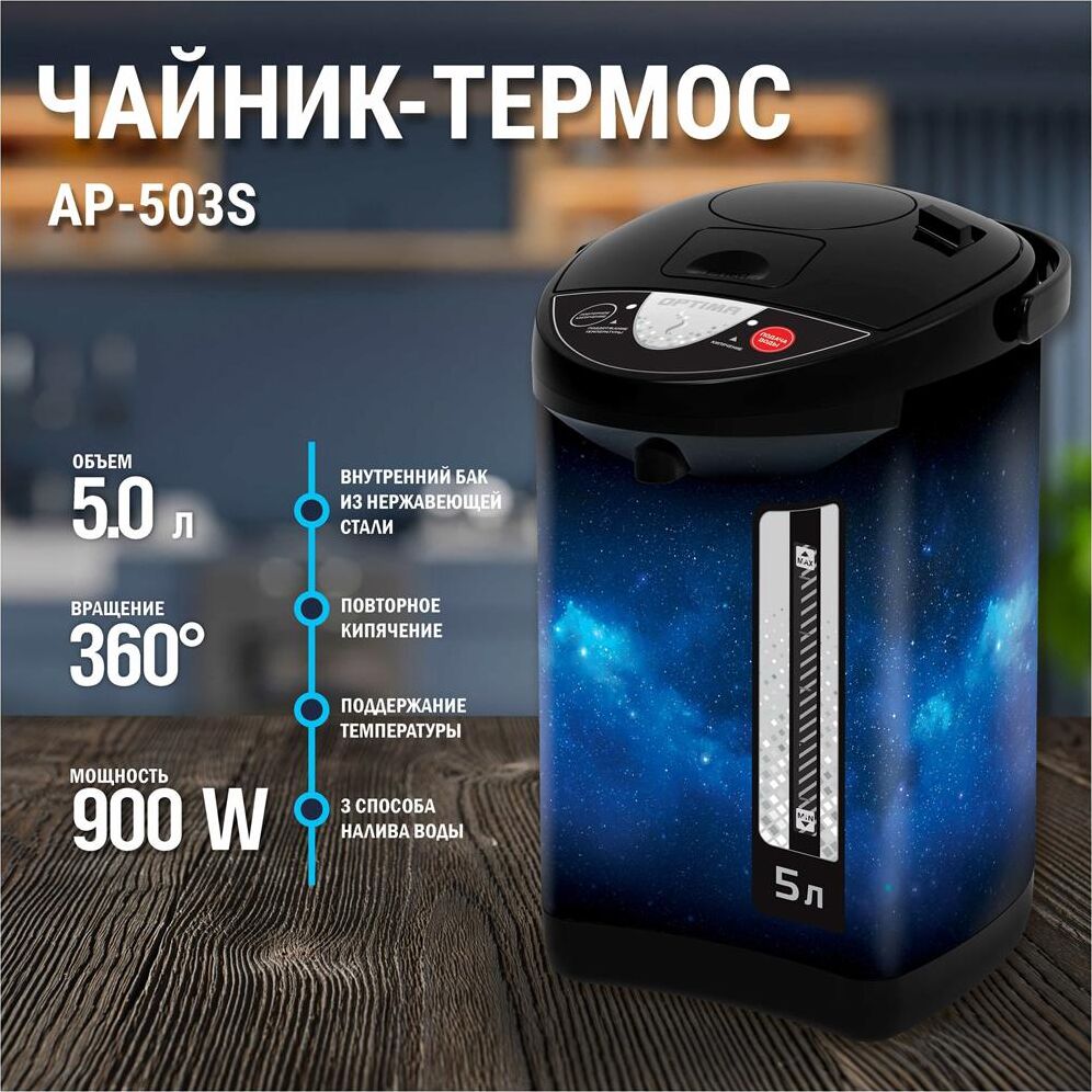 Мощность (Вт): 900 Вт; Напряжение (В): 230; Объем (л): 5 л; Поворот базы на 360 градусов.Повторное кипячение.Способ подачи воды: электронный насос ( кнопка на панели / кнопка под носиком ), воздушный насос ( ручная помпа ); Функция поддержания температуры.Частота (Гц): 50; Вес брутто (кг): 5,55; Вес нетто (кг): 5,35; Защита от перегрева.Материал бака: нержавеющая сталь; Материал корпуса: металл, пластик;