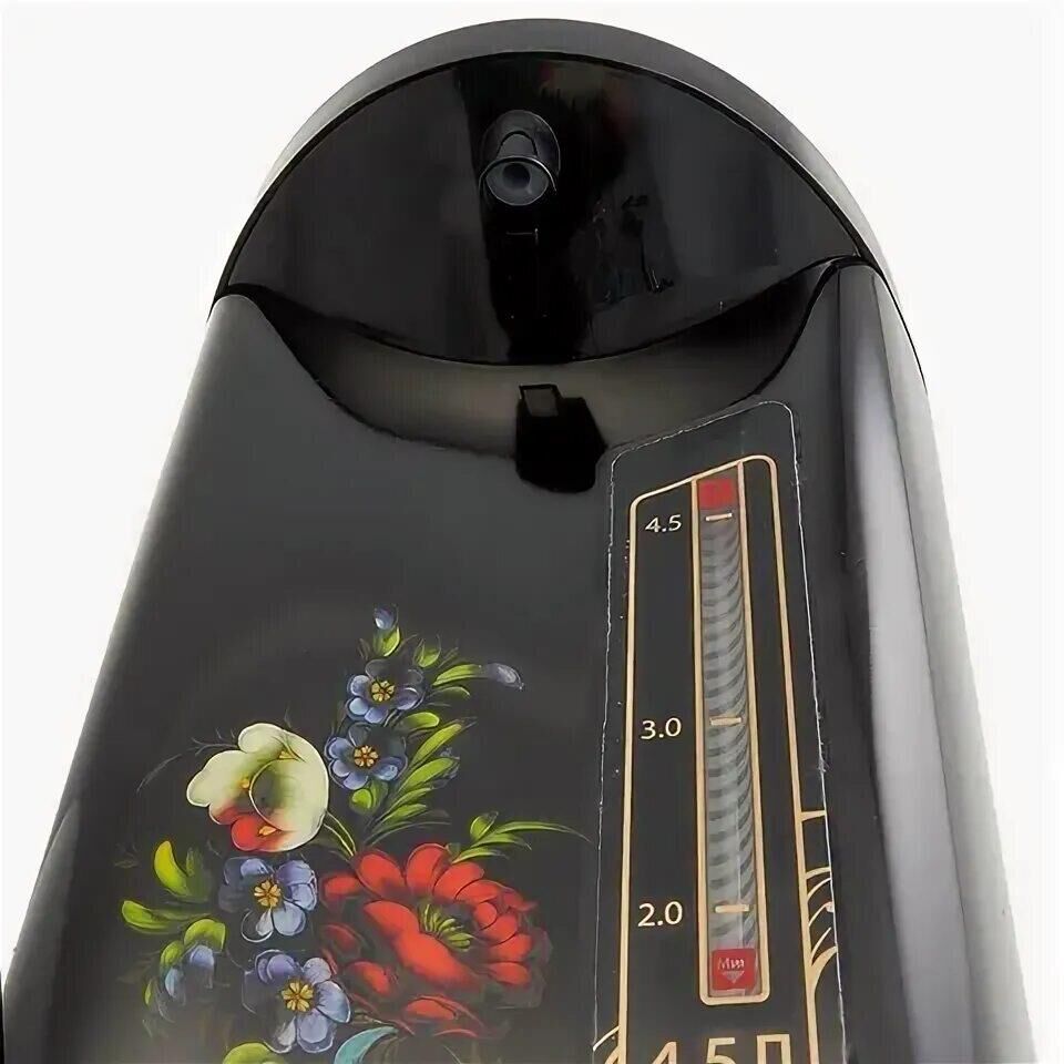 Объем 4,5 л. Мощность в режиме кипячения 900 Вт. Мощность в режиме поддержания температуры воды 30 Вт. Внутренняя ёмкость из нержавеющей стали. Вращение корпуса на основании на 360°. Шкала уровня воды. Световые индикаторы работы. 3 способа розлива воды: ручной. автоматический. электрический. Режим поддержания температуры воды. Функции повторного кипячения и дехлорирования воды. Съёмный сетевой шнур электропитания. Съёмная крышка для удобства очистки. Защита от перегрева. Блокировка ручной помпы от случайного нажатия. Автоматическое отключение при недостаточном количестве воды. Цвет: черный.