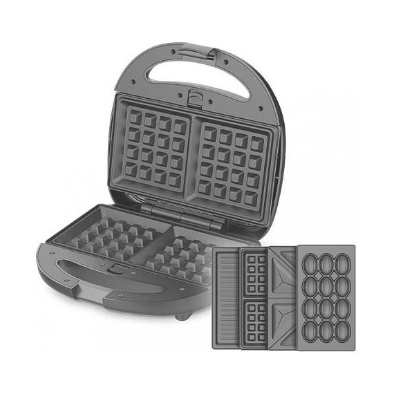MultiChef, мощность: 800 Вт, многофункциональный прибор 4 в 1, 4 пары панелей в комплекте: гриль, венские вафли, сэндвич, орешки, антипригарное покрытие панелей Non-Stick PRO, равномерный нагрев, вертикальное хранение, отсек для хранения шнура, 2 индикатора работы: нагрева и питания, диапазон температур нагрева: 230 °С, ненагревающаяся ручка, противоскользящие ножки, длина шнура: 0.7 м, напряжение: 220-240 В, 50-60 Гц, защита от поражения электротоком: класс I