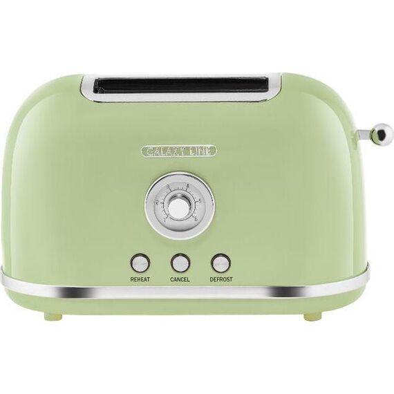 Тостер электрический Galaxy LINE GL 2911, райская олива, металл, 900 Вт, 6 степеней поджарки, функция подогрева, функция разморозки, автомат. центрирование тостов, автоотк. при перегреве, кнопка отмены пригот., съемный поддон для крошек