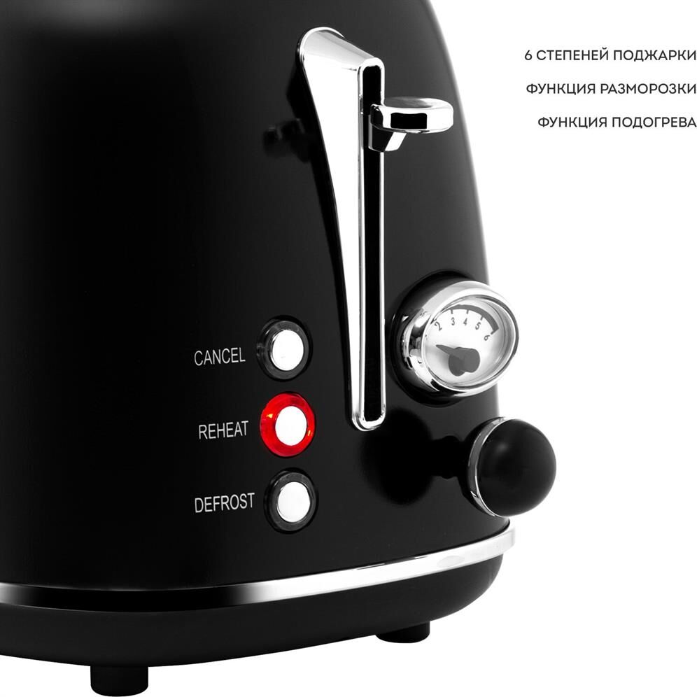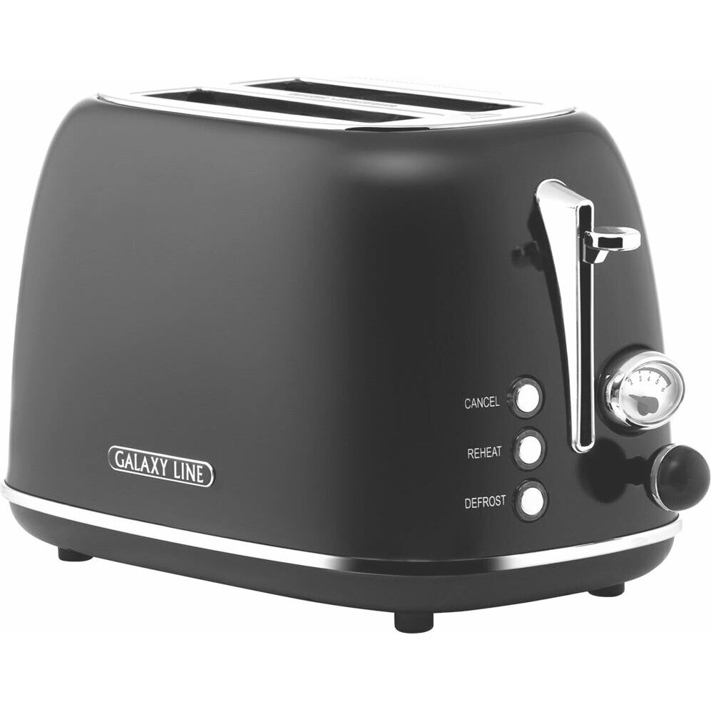 Тостер электрический Galaxy LINE GL 2920, магия черного, металл, 900 Вт, 6 степеней поджарки, метал. корпус, функция подогрева, функция разморозки, автомат. центрирование тостов, автоотключение при перегреве, кнопка отмены приг., съемный поддон для крошек