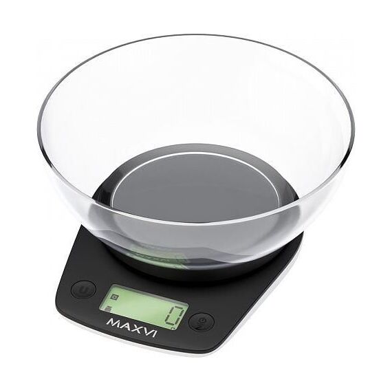 Максимальный вес 5 кг, цена деления 1 г, функция «Тара», взвешивание продуктов и определение объема жидкости, платформа из пластика, нескользящие ножки, съёмная чаша 2 л в комплекте, питание 3В (2 батарейки ААА в комплект не входят)