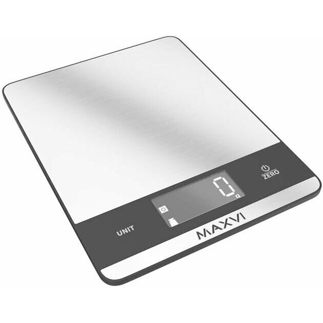 Максимальный вес 5 кг, цена деления 1 г, функция «Тара», взвешивание продуктов и определение объема жидкости, сенсорное управление, металлическая платформа для взвешивания, нескользящие ножки, питание 3В (2 батарейка ААА в комплект не входят)