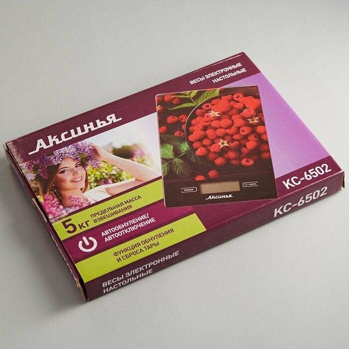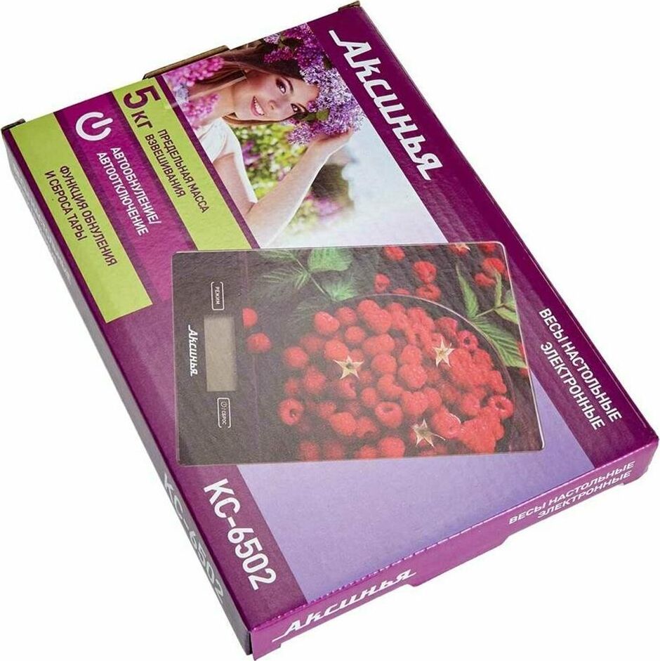 Весы кухонные АКСИНЬЯ КС-6502 "Сочная малина" 5 кг, стекло
