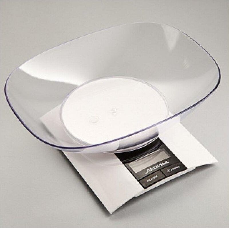 Предельная масса взвешивания 3 кг, Точность взвешивания ± 1 г, Платформа из термостойкого пластика, Цвет: белый, Съемная прозрачная чаша, LCD-дисплей, Индикатор уровня заряда батареи и перегрузки весов, Функция сброса веса тары и обнуления позволяет последовательно взвешивать ингредиенты блюда, не учитывая массу посуды, Выбор единицы измерения, Автоматическое отключение, Электропитание: 2х1,5 В батарея типа ААА (в комплекте).