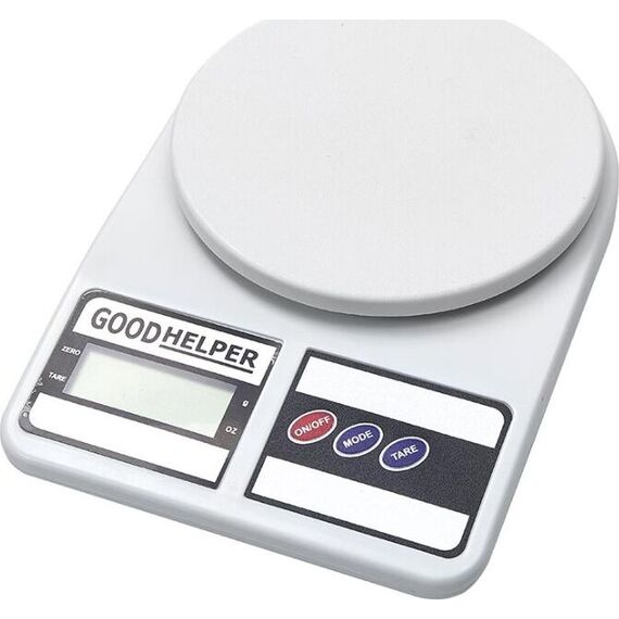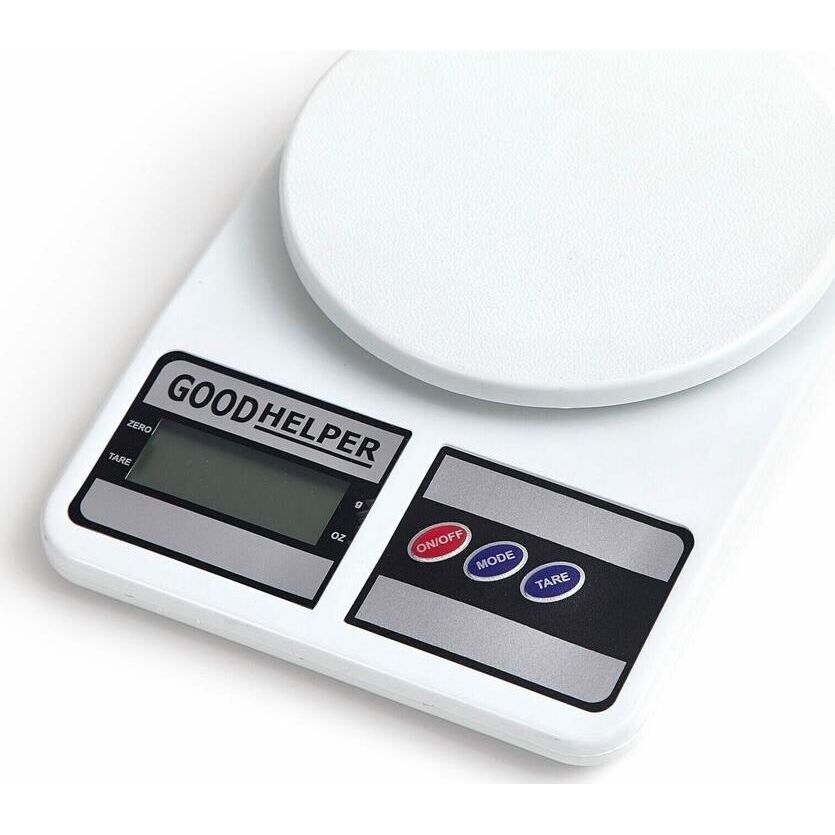 Выдерживают нагрузку до 10 кг, при цене деления 1 грамм, Функция «Тарирование» позволяет при взвешивании исключить вес посуды. Можно изменить единицы измерения с граммов на унции (кнопка Mode), Питание: 2 батарейки типа ААА, Индикатор замены элементов питания. Корпус выполнен из прочного пластика. Ножки прорезинены и прочно фиксируют устройство на столе.