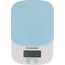 Весы кухонные электронные. Максимальный вес: 2 кг, Точность взвешивания до 1 грамма, Тарокомпенсация, Материал платформы /чаши: пластик, Тип элементов питания: 2*ААА, Автоматическое отключение, Цвет: голубой/белый, Срок гарантии: 12 месяцев.
