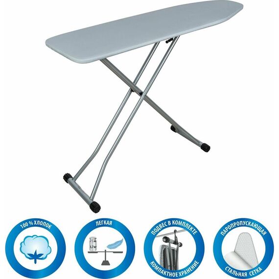Тип товара гладильная доска Материалы Материал каркаса металл Материал чехла хлопок Материал рабочей поверхности металлическая сетка Цвет Цвет серый Особенности конструкции Тип напольная Регулировка высоты доски Да Подставка для утюга Да Встроенная розетка Нет Съемный чехол Да Подставка под парогенератор Нет Размеры и вес Длина гладильной поверхности, в см 110 Ширина гладильной поверхности, в см 33 Вес, в кг 35