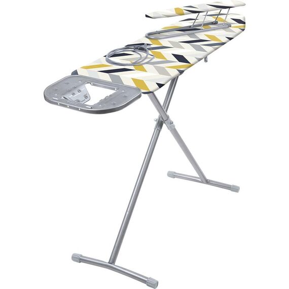 Надёжная металлическая поверхность с отверстиями для пара Съёмный чехол из хлопка Плавно регулируемая высота до 0,93 м Подставка под утюг с термоустойчивыми вставками Переносной подрукавник Электрический соединитель 1,6 м Устойчивые опоры с пластиковыми наконечниками для защиты напольного покрытия Фиксация в сложенном виде Максимальная нагрузка на гладильную поверхность - 25 кг