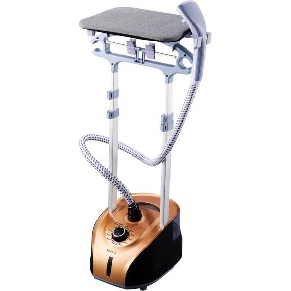 Отпариватель Мощность: 2800Вт. Объем резервуара: 2,5л. 12-ти дисковый латунный тэн Готовность пара: 30с. Время работы: 60мин. Телескопическая стойка 47-123см. Удобный подвес шланга Вешалка Гладильная доска Световой индикатор Подходит для всех типов ткани Сеть: 220-240В, 50Гц