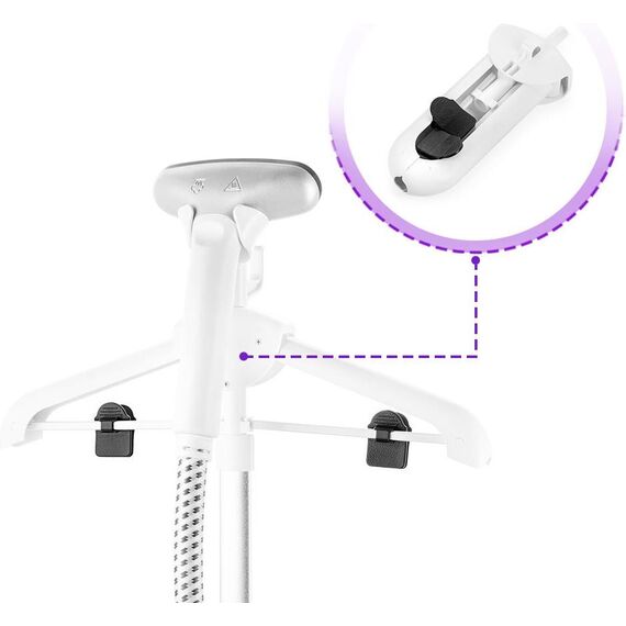 Мощность 2200 Вт Ёмкость резервуара 3 л Температура пара 98-100 °С Подача пара 45 г/мин Время нагрева 1-2 минуты Длина шнура 3 м Длина парового шланга 1,5 м Размер корпуса 280 х 360 х 330 мм Размер отпаривателя с выдвинутой телескопической стойкой и вешалкой 460 х 360 х 1750 мм