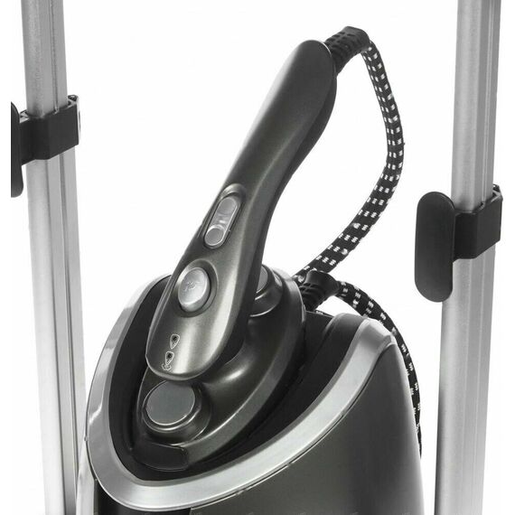 Мощность 2100 Вт Ёмкость резервуара для воды 1,2 л Подача пара 30÷5 г/мин Мощность утюжка 600 Вт Мощность бойлера 1500 Вт Температура пара 130-140 °С Время предварительного прогрева 50 с Длина шнура 1,8 м Длина парового шланга 1,3 м Размер отпаривателя в собранном виде 365 х 360 x 1560 мм Вес прибора 6,9 кг