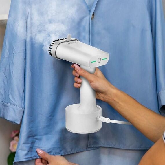 Мощность 1500 Вт. Ёмкость резервуара для воды 0,15 л. Подача пара 20±5 г/мин. Длина шнура 1,9 м. Размер устройства 141 х 93 x 217 мм.