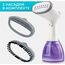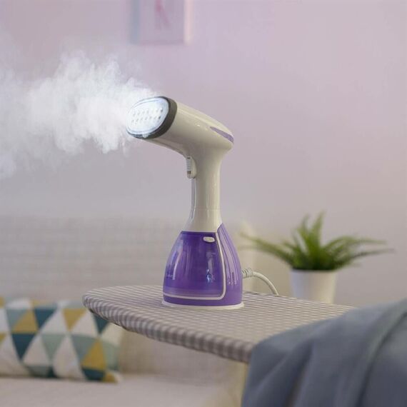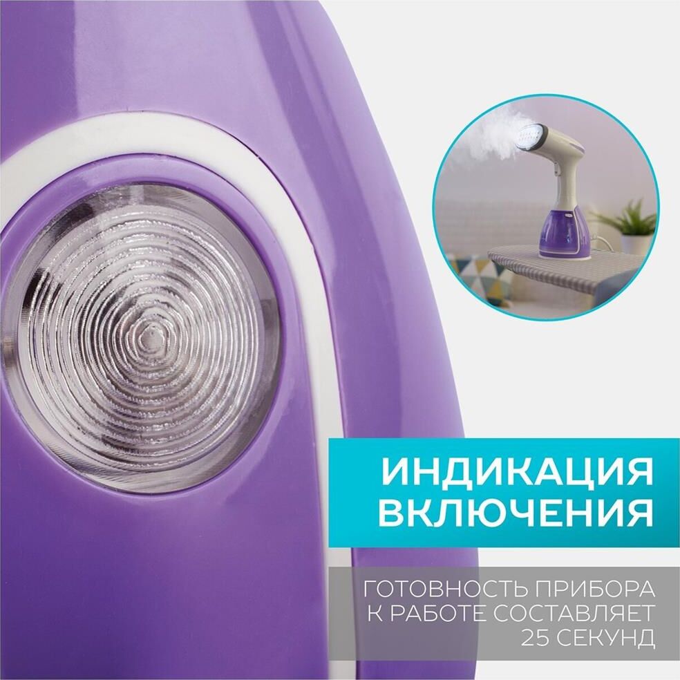 Тип: Ручной Мощность, Вт: 1500 Индикация включения: Да Регулируемый пар до г/мин: 60 Резервуар для воды, мл: 280 Покрытие подошвы: Стальная Готовность к работе, сек: 25 Набор аксессуаров: Насадка-щетка, насадка "вельвет" Длина электрошнура, м: 1.8 Особенности модели: Стальная подошва – не цепляет одежду Цвет: Фиолетовый