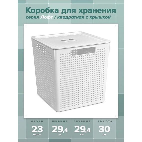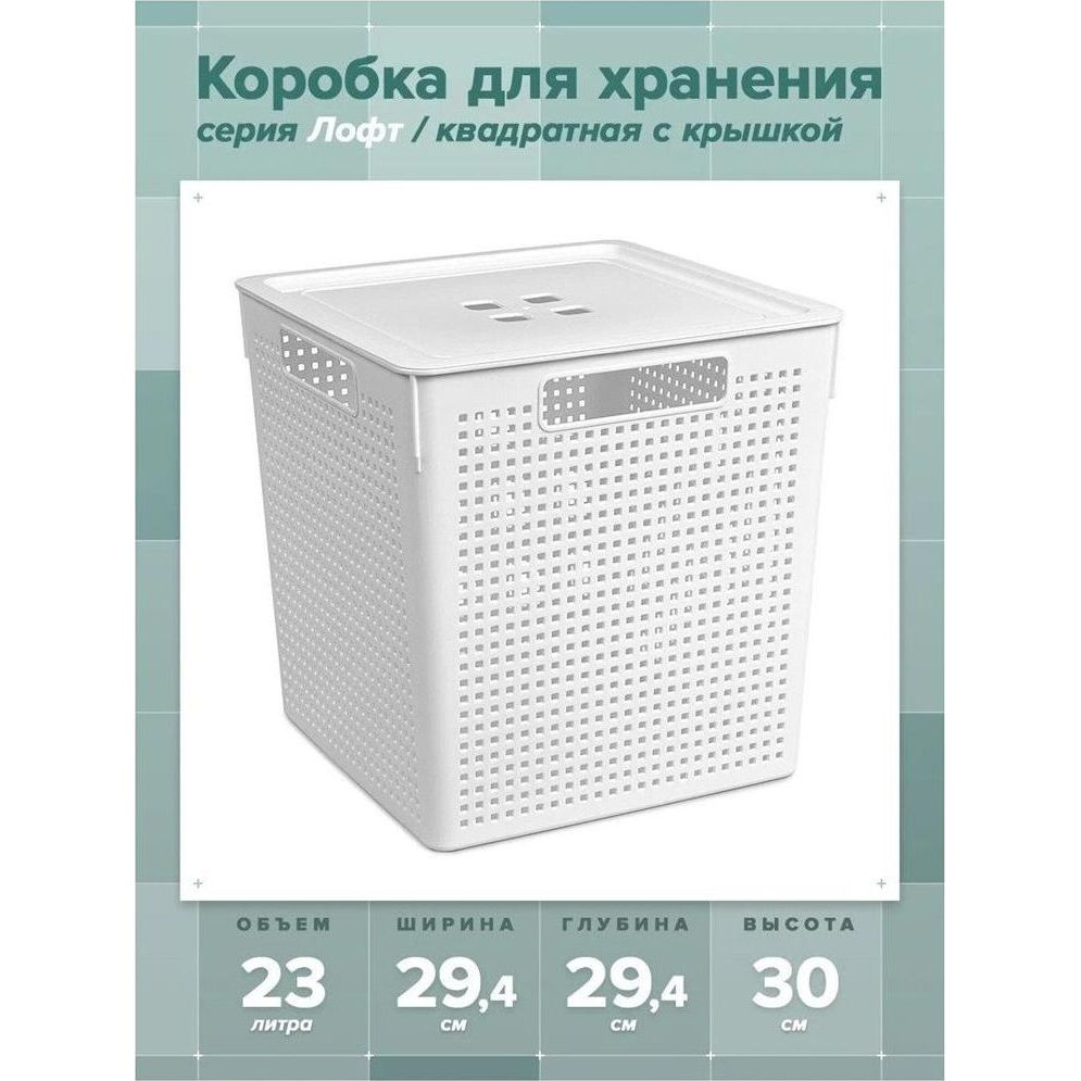 Коробка для хранения квадратная "Лофт" с крышкой 23л 294х294х301 (белый)