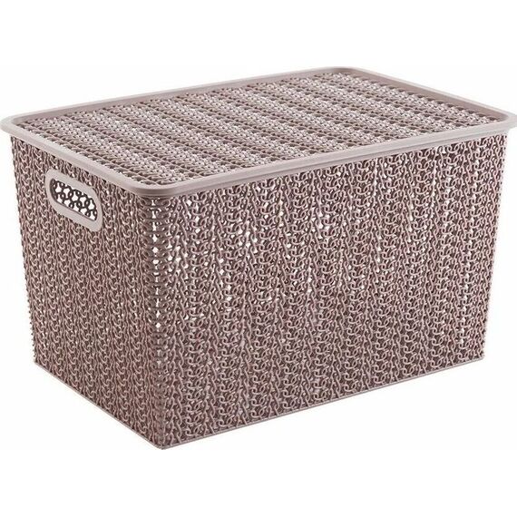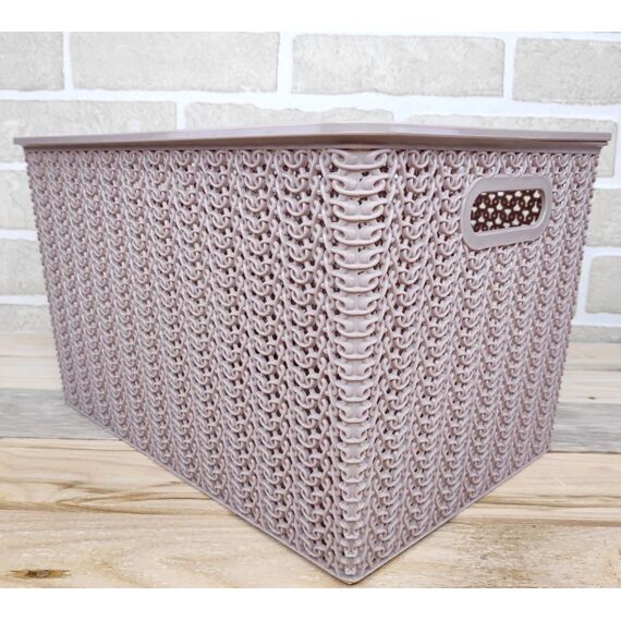 Корзина для хранения VIOLET Вязь 14л с крышкой розовый нюд