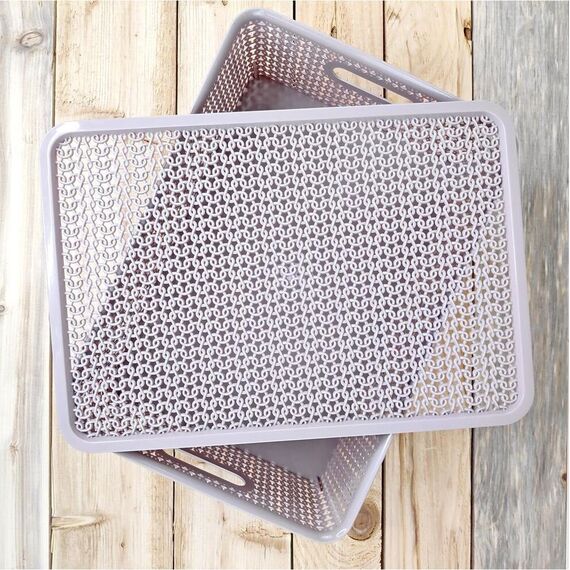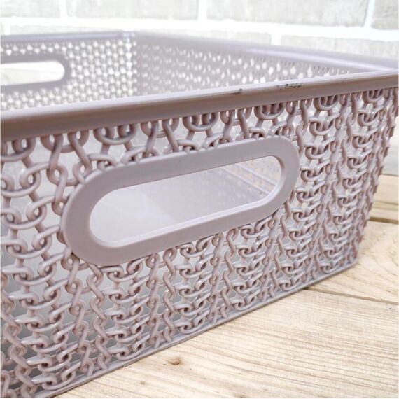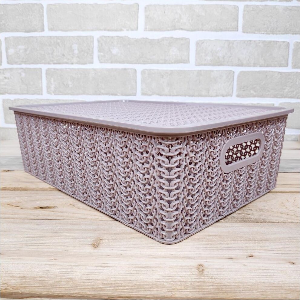 Корзина для хранения VIOLET Вязь 7,5л с крышкой розовый нюд
