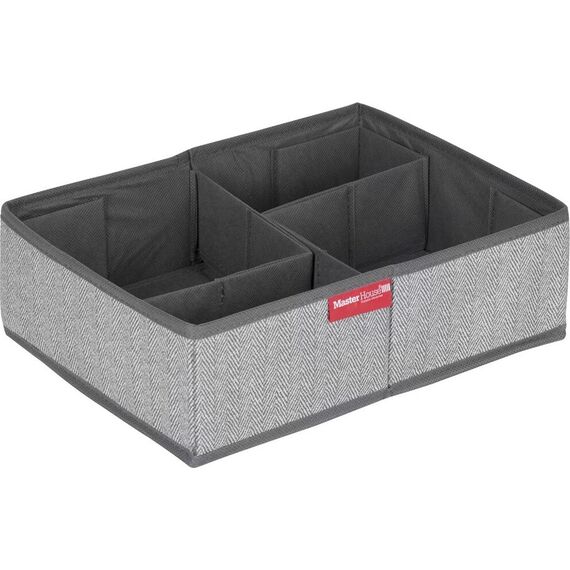 Органайзер-трансформер, размер 32*24*10см. Идеален для белья, галстуков, носков. Удобная система складывания внутренних перегородок позволяет организовать внутреннее пространство в соответствии с вашими потребностями. Легко складывается. Занимает мало места в сложенном виде. Продуманный дизайн, напоминающий твид для дорогого мужского костюма, подойдет для любого интерьера. Состав (материал): нетканый материал (100% полиэстер), картон