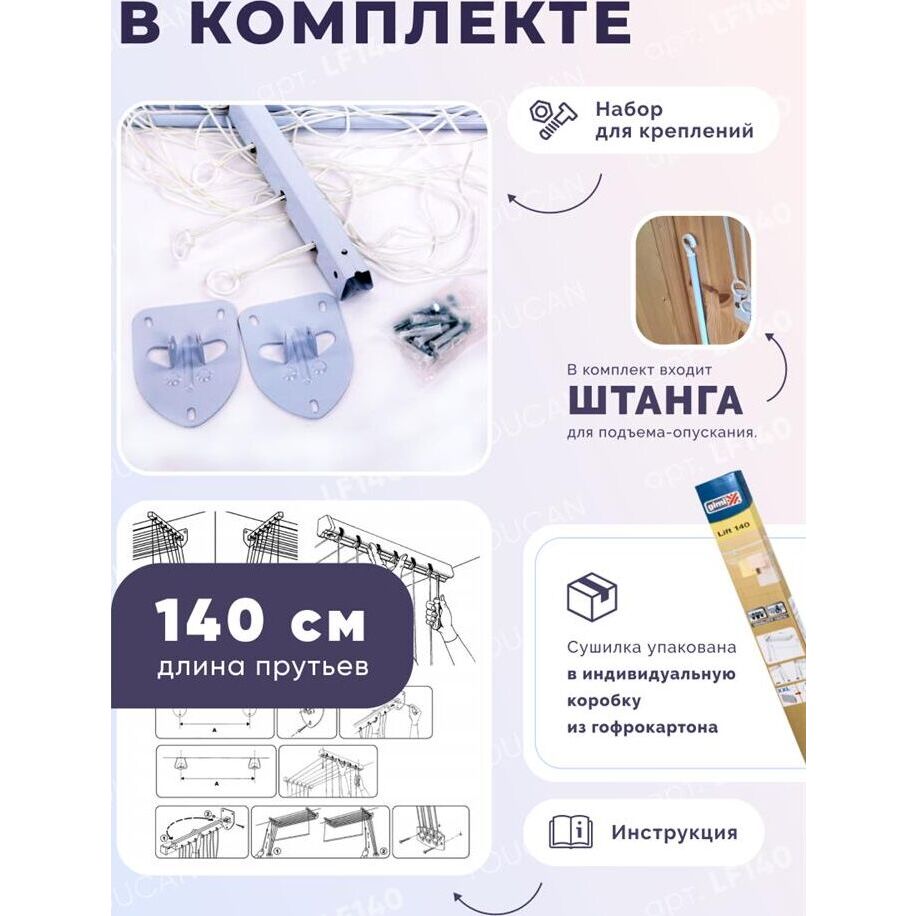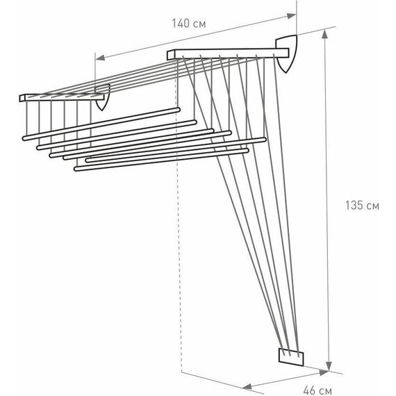 Стальная с полимерным покрытием. Крепление на стену или потолок. Рабочая длина 8,4 м. Максимальная нагрузка 15 кг. Вес 3,19 кг.