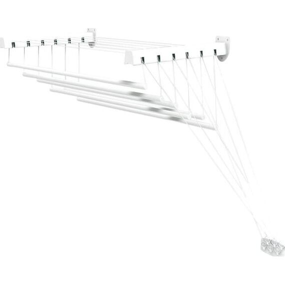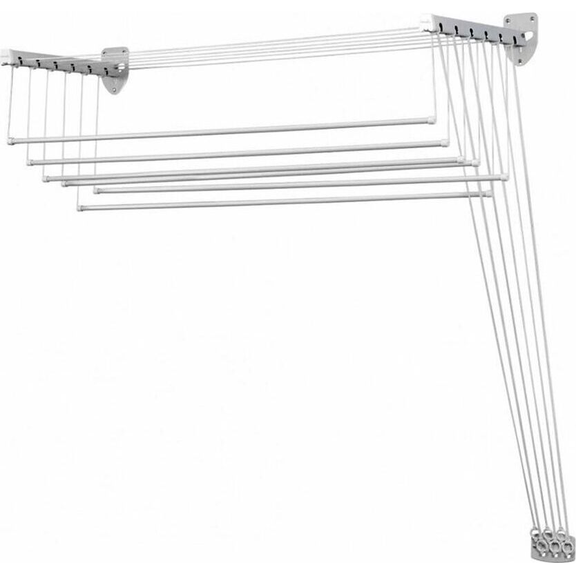 (ВхДхШ)135х180х46см.Материал: сталь, пластмасса, текстиль.Длина стержня: 1,8 м.Максимальный вес (белья): 12 кг.Длина кронштейна: 43 см.Цвет белый.