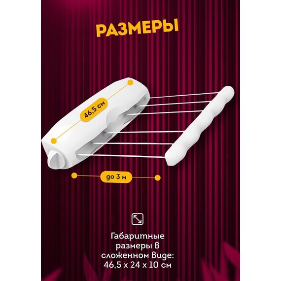Сушилка для белья Gimi Rotor 6 настенная верёвочная. Рабочая длина для сушки белья 21 м. Высота сушилки 9 см. Ширина сушилки 360 см. Максимальный вес нагрузки 10 кг.