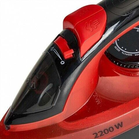 Номинальная потребляемая мощность 2200 Вт Объём резервуара для воды 160 мл Регулируемая подача пара до 25 г/мин Паровой удар 120 г/мин Длина электрошнура 1,5 м Антипригарное покрытие подошвы Прозрачный резервуар для воды Индикатор нагрева утюга Терморегулятор Три рабочих режима: сухое глажение, отпаривание, разбрызгивание воды Возможность регулировки степени отпаривания Функция «Паровой удар» Функция «Самоочистка» Защита от перегрева Цвет: черный с красным