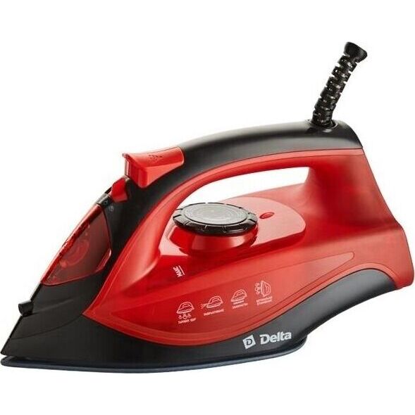 Номинальная мощность 2200 Вт. Объем резервуара для воды 250 мл. Длина шнура 1,8 м. Керамическое покрытие подошвы. Прозрачный резервуар для воды. Индикатор нагрева утюга. Терморегулятор. Три рабочих режима: сухое глажение, отпаривание, разбрызгивание воды. Возможность регулировки степени отпаривания. Возможность вертикального отпаривания. Функция «Паровой удар». Функция «Самоочистка». Функция «Антинакипь». Защита от перегрева. Цвет: черный с красным. Специальный стаканчик для заполнения резервуара водой 80 мл.