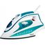 Максимальная мощность 2200 Вт. Керамическая подошва. Прозрачный резервуар для воды. Индикатор нагрева утюга. Терморегулятор. Три рабочих режима: сухое глажение, отпаривание, разбрызгивание воды. Возможность регулировки степени отпаривания. Возможность вертикального отпаривания. Функция "Паровой удар". Функция "Самоочистка". Функция "Защита от накипи". Цвет: белый с бирюзовым. Специальный стаканчик для заполнения резервуара водой.