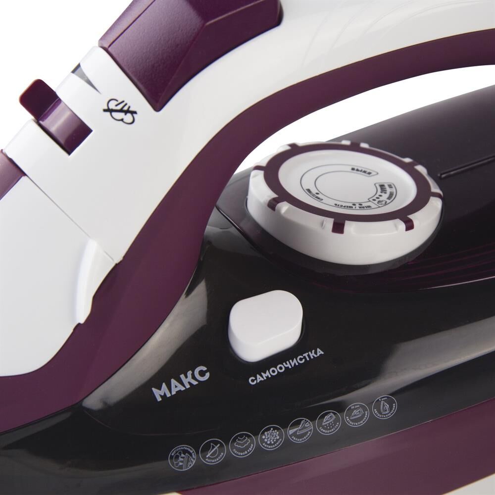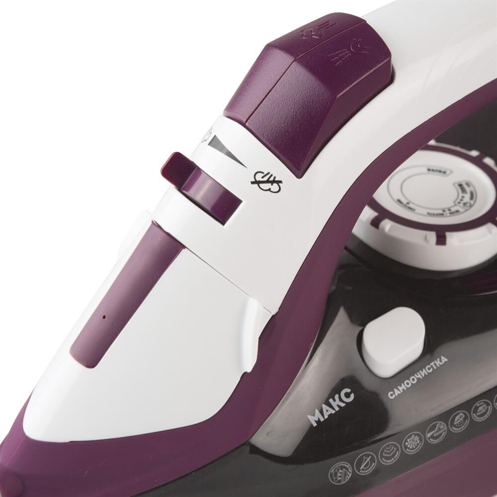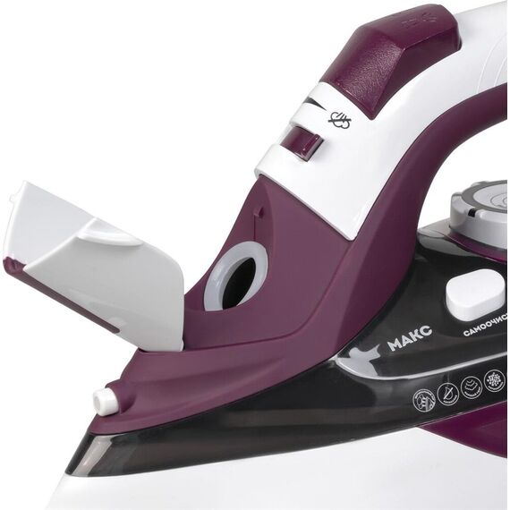 Утюг 2400 Вт, керамическое покрытие подошвы, уплотнитель крышки резервуара, функции: автоотключение, самоочистка, антикапля, антинакипь, индикатор автоотключения, указатель максимального уровня воды, индикатор нагрева, вертикальное отпаривание/ паровой удар, функция увлажнения, защита от перегрева, емкость для воды 500мл, мерный стакан, питание 220-240В, 50Гц