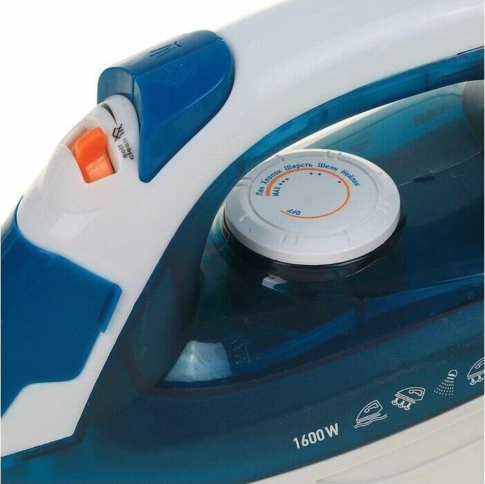 Мощность 1600 Вт. Стальная подошва. Сухая глажка. Спрей. Пар. Паровой удар. Вертикальное отпаривание. Функция самоочистки.