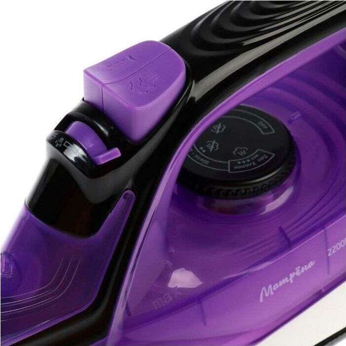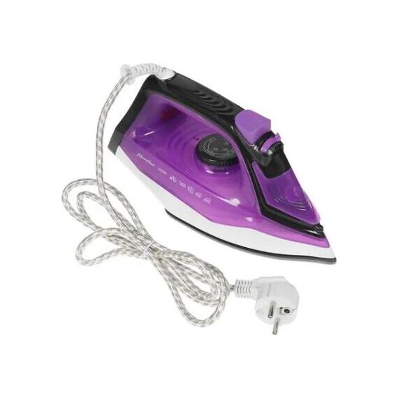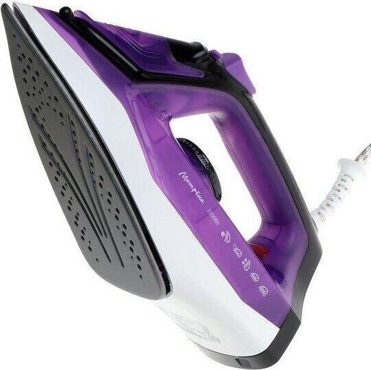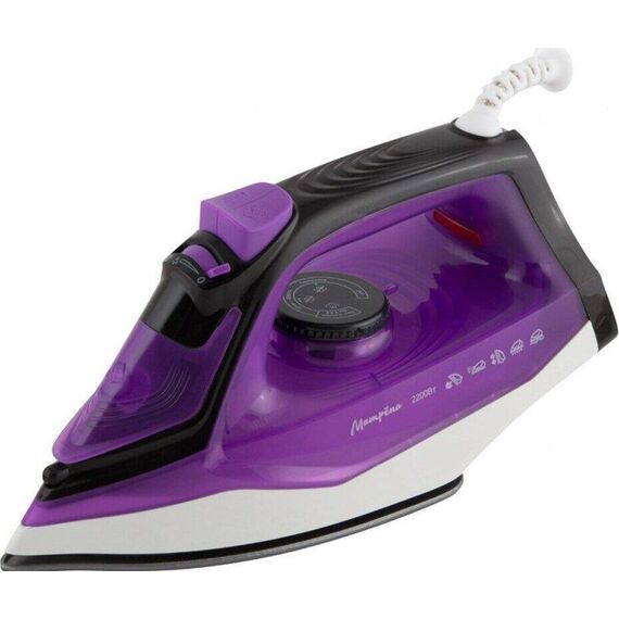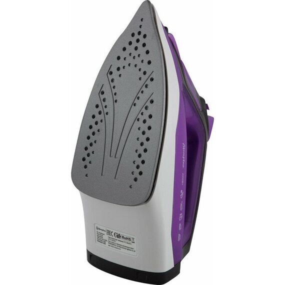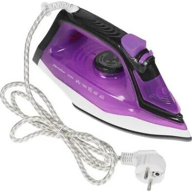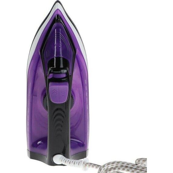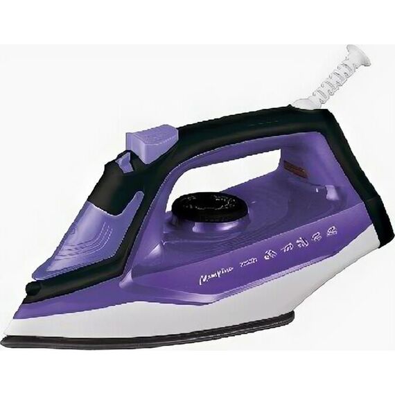 Подошва с тефлоновым покрытием Мощность 2200Вт Индикатор нагрева Сухая глажка Пар Паровой удар Спрей Функция самоочистки Указатель максимального уровня воды Плавная регулировка температуры Шарнирное вращение шнура на 360 Подошва 18,4 см Защита от перегрева