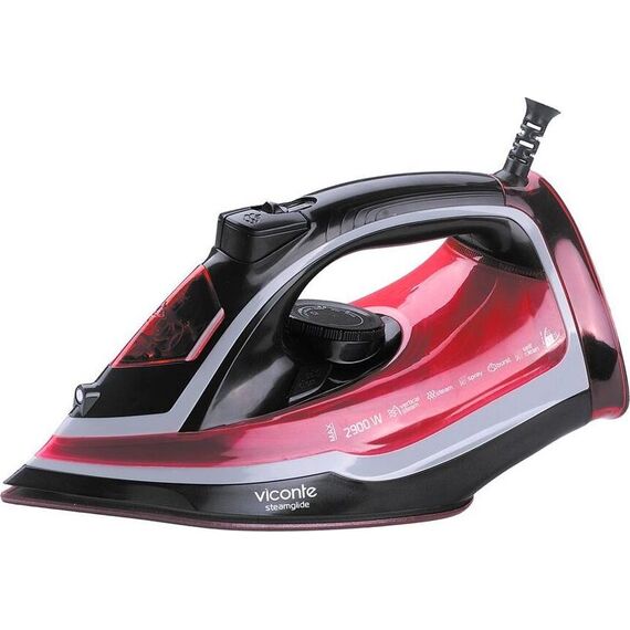Утюг Viconte VC-4318 мощность 2900 Вт, Утюг, мощность 2900 Вт, керамическая подошва, вертикальная подача пара, паровой удар до 140 г/мин, сухое глажение, терморегулятор, функция самоочистки, возможность регулировки степени отпаривания, мощный разбрызгиватель, индикатор нагрева утюга, резервуар для воды – 400 мл, стаканчик для наполнения водой.