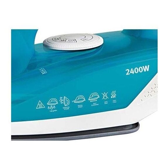 Утюг. Мощность: 2400 Вт, Материал подошвы: Подошва UniCera – уникальное двойное керамическое покрытие, обеспечивающее сверхлегкое скольжение по ткани, Паровой удар: 140 г/мин, Вертикальное отпаривание, Система самоочистки, Функция разбрызгивания, Противокапельная система, Защита от накипи, Объeм резервуара для воды: 260 мл, Регулировка подачи пара, Шаровое крепление шнура, Длина сетевого шнура: 1,8 метра, Мерный стакан, Цвет: Синий/белый