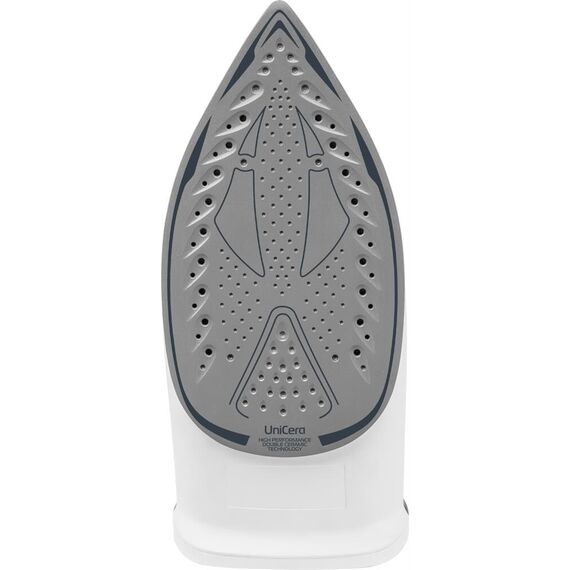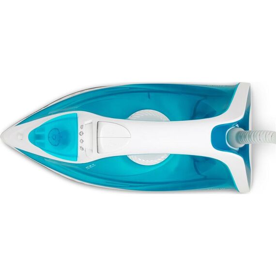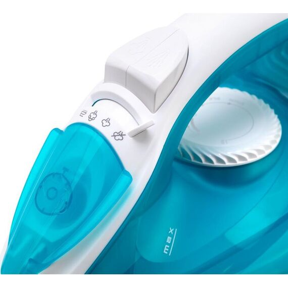 Утюг. Мощность: 2400 Вт, Материал подошвы: Подошва UniCera – уникальное двойное керамическое покрытие, обеспечивающее сверхлегкое скольжение по ткани, Паровой удар: 140 г/мин, Вертикальное отпаривание, Система самоочистки, Функция разбрызгивания, Противокапельная система, Защита от накипи, Объeм резервуара для воды: 300 мл, Регулировка подачи пара, Шаровое крепление шнура, Длина сетевого шнура: 1,8 метра, Мерный стакан, Цвет: Бирюзовый/белый