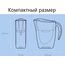 Очищает воду там, где вам нужно * Очень прост в использовании * Все детали выполнены из качественного пищевого пластика * Ресурс: 170 л * Скорость фильтрации: 0,3 л/мин * Объем кувшина / воронки: 2,4 / 0,8 л * Габариты: 26,7x10,2x26,7 см *