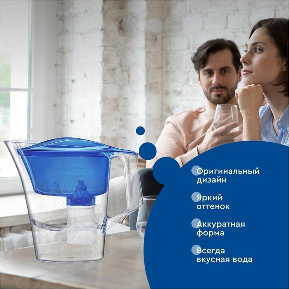 Яркий компактный кувшин с элегантным узором. Не занимает много места на кухне, удобно помещается в дверце холодильника. В комплекте кассета БАРЬЕР Старт. Кассета Старт – экономичная очистка водопроводной воды от хлора и других вредных примесей. Устраняет посторонние привкусы и запахи. Препятствует образованию накипи в чайнике. Одна кассета БАРЬЕР способна заменить несколько сотен пластиковых бутылок. По окончании ресурса кассету можно сдать на переработку.