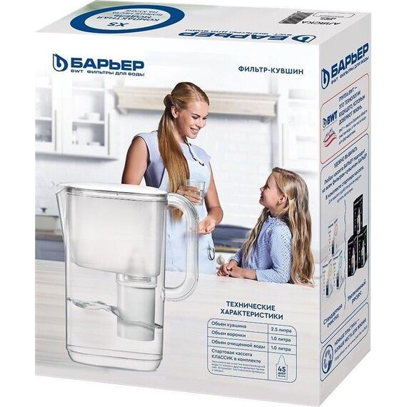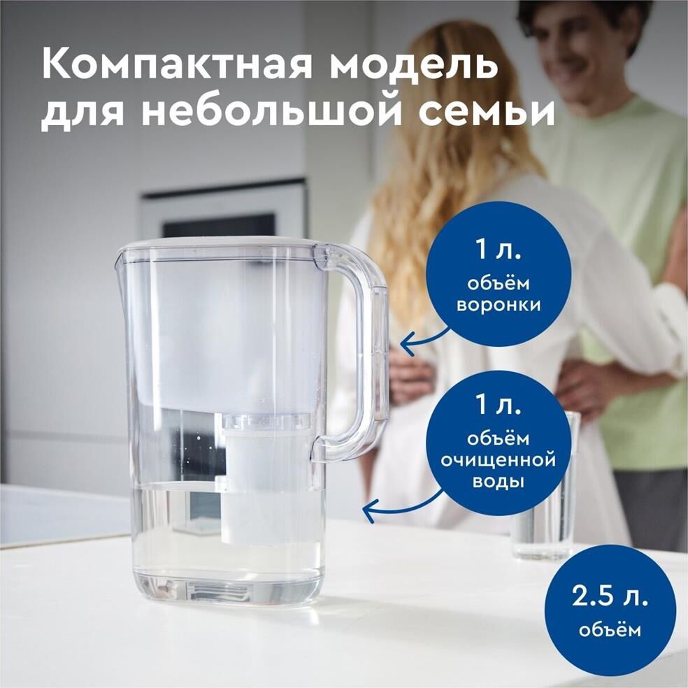Тип кассеты в комплекте Классик, Объём кувшина 2,5 л, Размеры упаковки 220x100x260мм, Возможность размещения в дверце холодильника да, Объём очищенной воды 1 л, Наличие и тип индикатора ресурса Нет индикатора, Объём фильтра-кувшина маленький, Цвет белый, Объём воронки 1 л