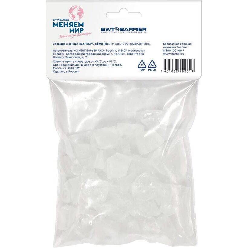 Сменная засыпка для бытового фильтра БАРЬЕР Софт Лайн. Защищает водонагревательные элементы от накипи, продлевает срок службы оборудования. Воду после фильтра БАРЬЕР Софт Лайн можно использовать ТОЛЬКО в технических целях. Не использовать в качестве питьевой воды! Масса -132 г (±10%) Размеры упаковки, ДхШхВ 90x30x160мм