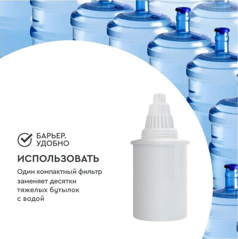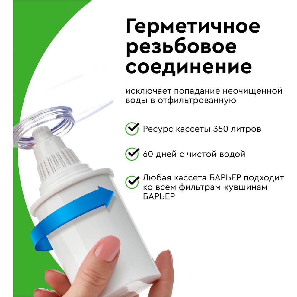 Кассета «Барьер Жесткость» Выгодная покупка х 3 шт в коробке. Устраняет: хлор, свинец, ртуть, соли жесткости, медь, ржавчина, песок, другие твердые частицы, побочные продукты хлорирования. Ресурс кассеты составляет 350 литров. Кассета «БАРЬЕР Жесткость» подходит ко всем фильтрам-кувшинам БАРЬЕР.