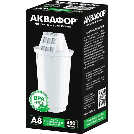 Очищает воду от вредных примесей: удаляет хлор, тяжелые металлы, пестициды, нефтепродукты, а также другие распространенные токсины и аллергены, улучшает вкус и запах воды. Эффективно удаляет из воды остатки фармпрепаратов. Особая конструкция модуля увеличивает ресурс до 350 литров, позволяя дольше очищать воду, даже если она содержит много видимых примесей — ржавчину, песок, взвеси. Сорбционная смесь содержит множество компонентов, усиливающих действие друг друга: высококачественный активированный кокосовый уголь, ионообменную смолу и запатентованный ионообменный сорбент АКВАЛЕН, селективный к тяжелым металлам. Активные ионы серебра надежно зафиксированы на поверхности микроволокна АКВАЛЕН, поэтому они работают на предотвращение размножения бактерий внутри модуля, но не смываются с поверхности угля в очищенную воду.