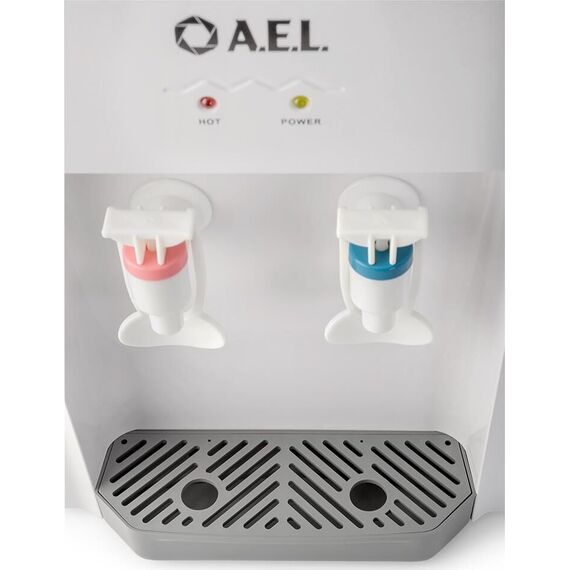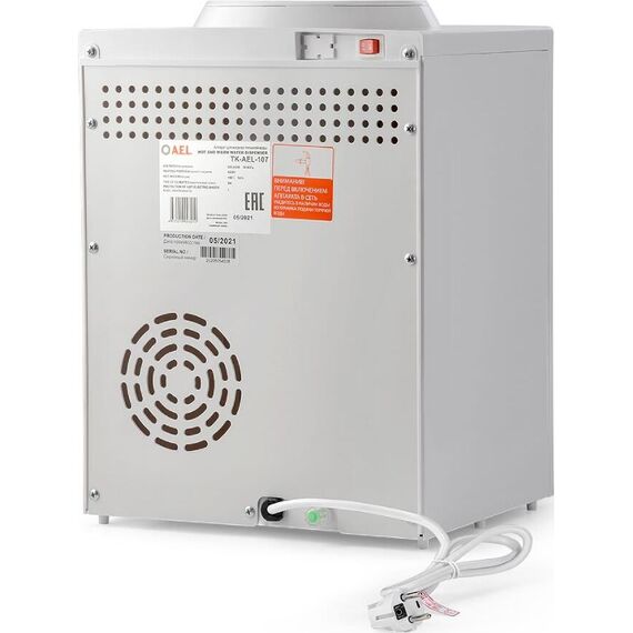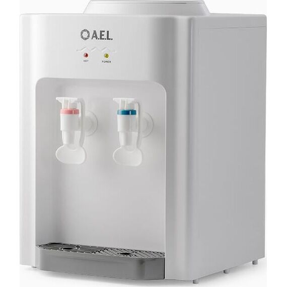 AEL TD-AEL-107 Настольный кулер для воды с электронным охлаждением и верхней загрузкой бутыли. Имеет компактные размеры, благодаря чему легко устанавливается на стол или тумбочку не загромождая пространство. Оснащен двумя механическими кранами типа "нажим чашкой" для подачи горячей и охлажденной воды. Для включения/отключения нагрева или охлаждения на задней стенке корпуса расположены специальные тумблеры. Корпус изготовлен из высококачественного пищевого пластика. Кулер подходит как для домашнего, так и для офисного использования, на предприятиях и учреждениях.