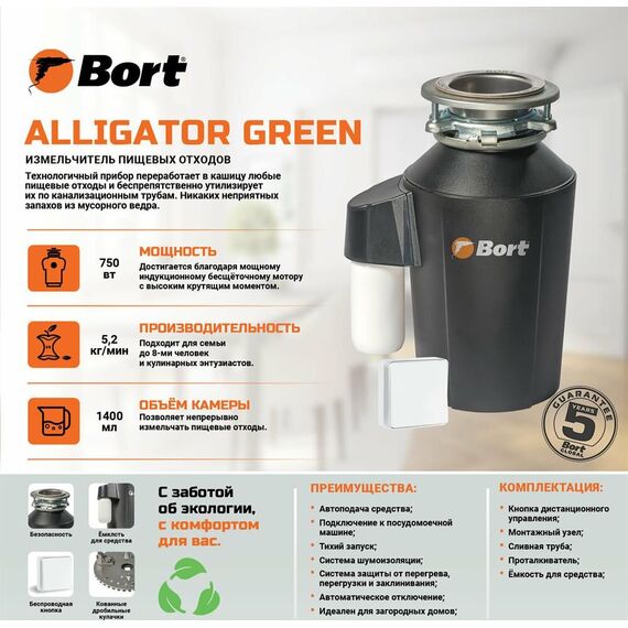 Тип мотора: индукционный Мощность л.с.: 1 Производительность, кг/мин: 5,2 диаметр сливного отверстия: 3 1/2 (90мм) Толщина дна раковины, мм: 1...18 Уровень шума, дБ: 55 Автоматическое выключение: Да Длина шнура питания, м: 1,2 Бесшумная работа: Да Размер, мм: 410х160 Способ загрузки: непрерывный Подключение к посудомоечной машине: Да Система шумоизоляции: полная Мощность, Вт: 750 Объем камеры, мл: 1 600 Материал корпуса камеры: Прочный композитный материал Материал измельчающего элемента: Нержавеющая сталь Тихий запуск: Да Система защиты от перегрузки и заклинивания: Да Скорость холостого хода, об/мин: 2 800 Вес изделия, кг: 11,3 Напряжение сети, В: 220 Частота тока, Гц: 50