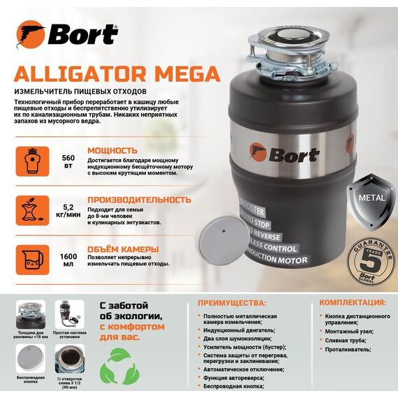 Измельчитель пищевых отходов BORT Alligator MEGA