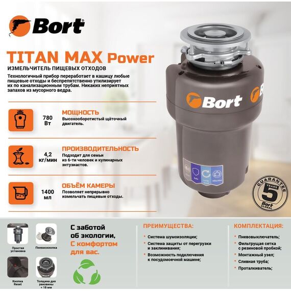 Измельчитель пищевых отходов BORT TITAN MAX Power