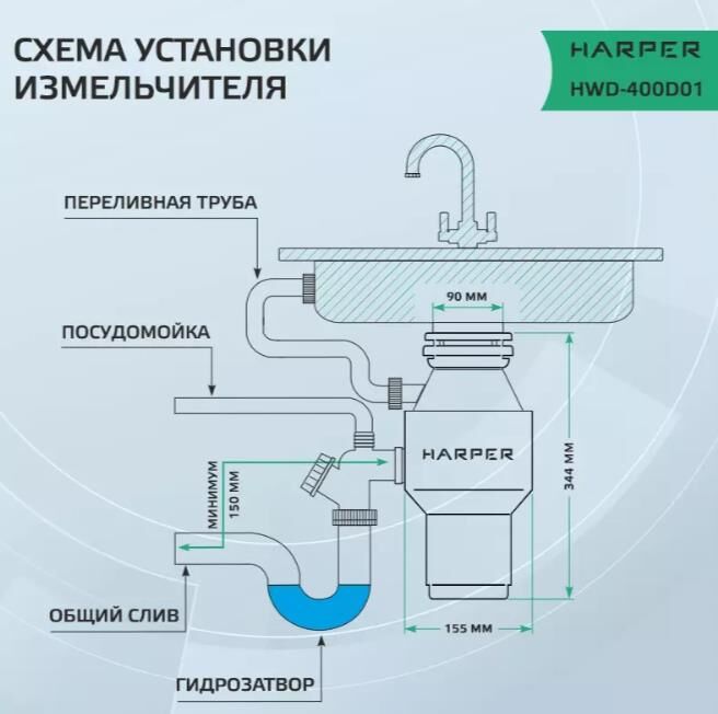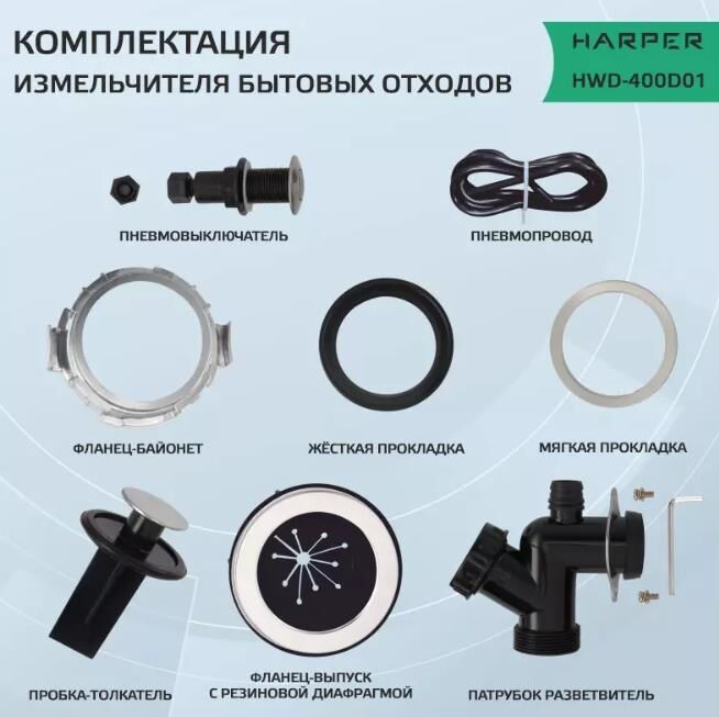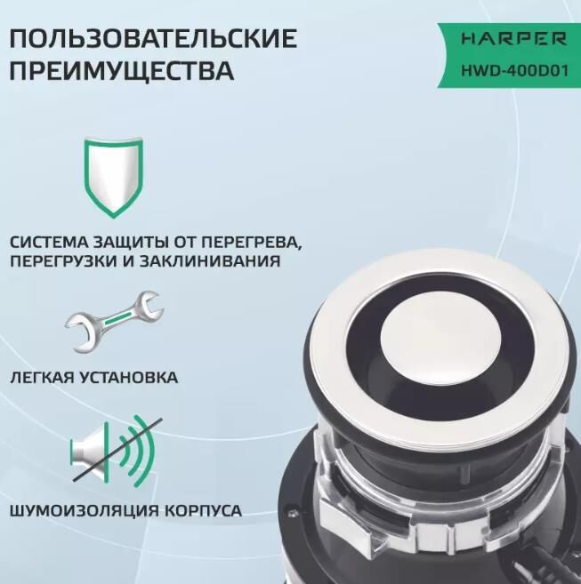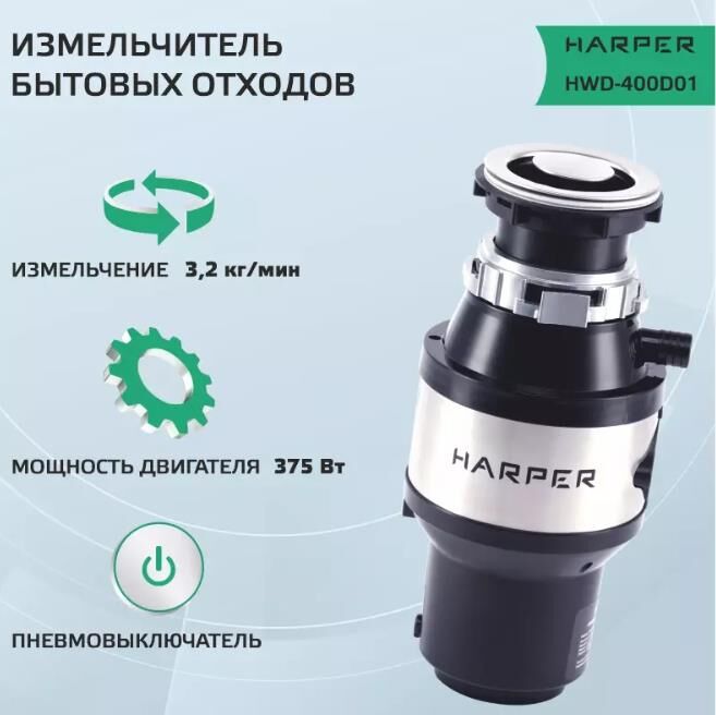 Измельчитель пищевых отходов HARPER HWD-400D01 черный