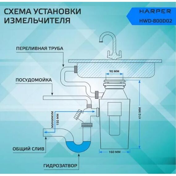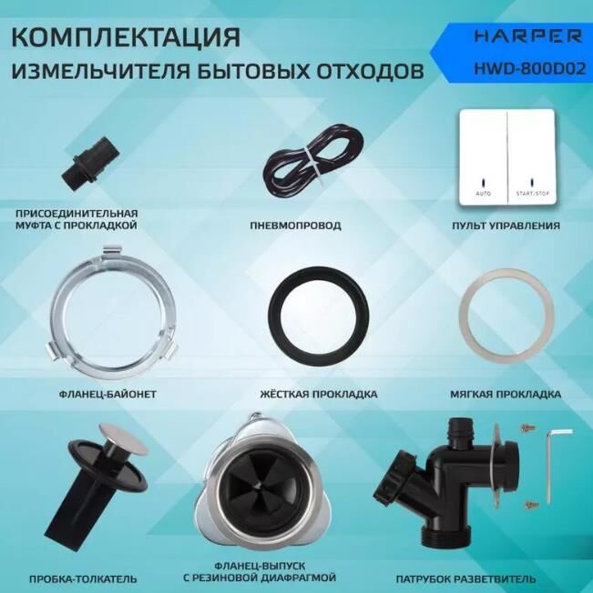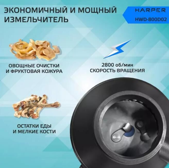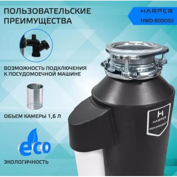 Измельчители пищевых отходов HARPER HWD-800D02 черный
