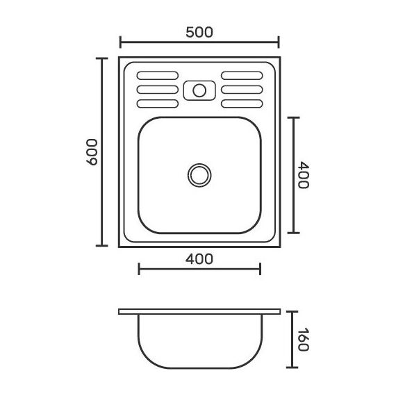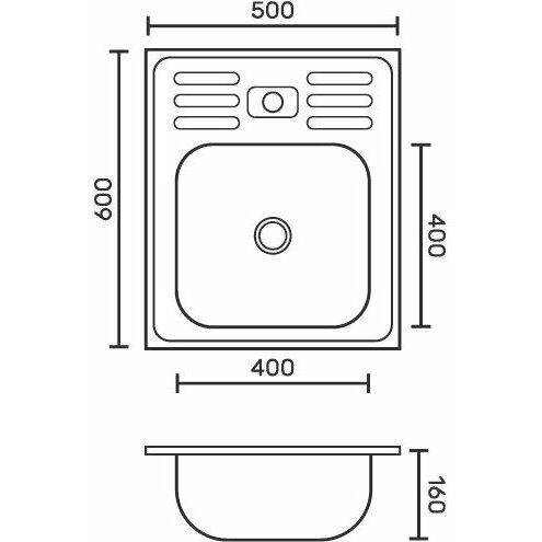 Мойка накладная FABIA м00003 Мойка накладная 50х60 см, толщина 0,4 мм, глубина 160 мм, без сифона