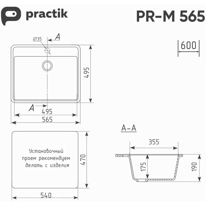 Классическая квадратная мойка Practik PR-M 565 с отверстием под смеситель устанавливается на мебельную базу 600 мм. Данная мойка имеет устанавливается в шкаф от 60 см и дает возможность осуществить монтаж мойки в стандартную столешницу шириной 60 см, а также открывает широкий спектр возможностей при проектировании кухни.Материал мойки представляет из себя искусственный камень, который является композитом на основе натурального мрамора и связующих смол. Искусственный камень существенно снижает уровень шума при падении струи воды. Специальное покрытие гелькоут защищает поверхность мойки от загрязнений и бытовых царапин, делая уход за мойкой легким и простым. Заводская гарантия составляет 1 год, а срок службы данной мойки, при соблюдении основных правил ухода за ней, составляет более 10 лет.