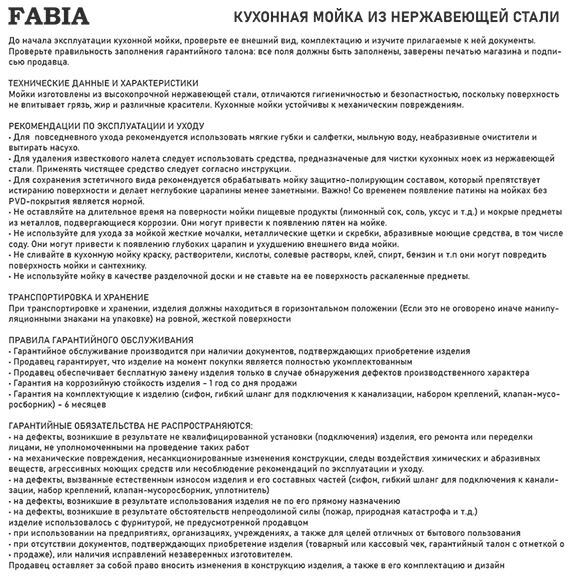 Врезная мойка FABIA из нержавеющей стали отличный вариант для кухни, она прослужит многие годы. Классическая форма и матовый цвет гармонично впишутся в любой интерьер и никогда не выйдут из моды. Оптимальный размер позволяет свободно мыть посуду, без страха её разбить. Мойка врезается в столешницу. Специальное дополнительное антишумовое покрытие, нанесенное на обратную сторону чаш, разработано для снижения шума воды в мойке. Практичная площадка, расположенная в углу, даёт возможность вмонтировать любую понравившуюся модель смесителя. В комплекте сифон с большой горловиной с переливом.Монтаж мойки производится на силикон без креплений. Габаритные размеры: ширина 600 мм, длина 450 мм, глубина 200 мм, толщина стали 0,6 мм.