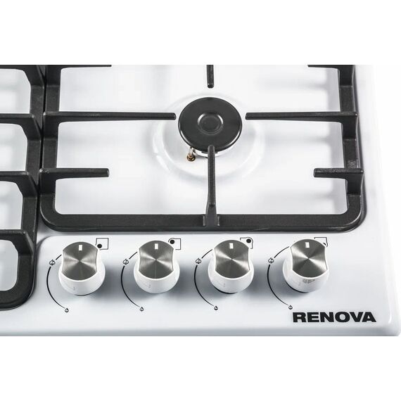 60*52*10. Газовая панель. Газ-контроль конфорок. Электроподжиг в поворотной ручке. Материал поверхности — эмалированная сталь. Материал решетки чугун. Цвет белый. Производство Турция.